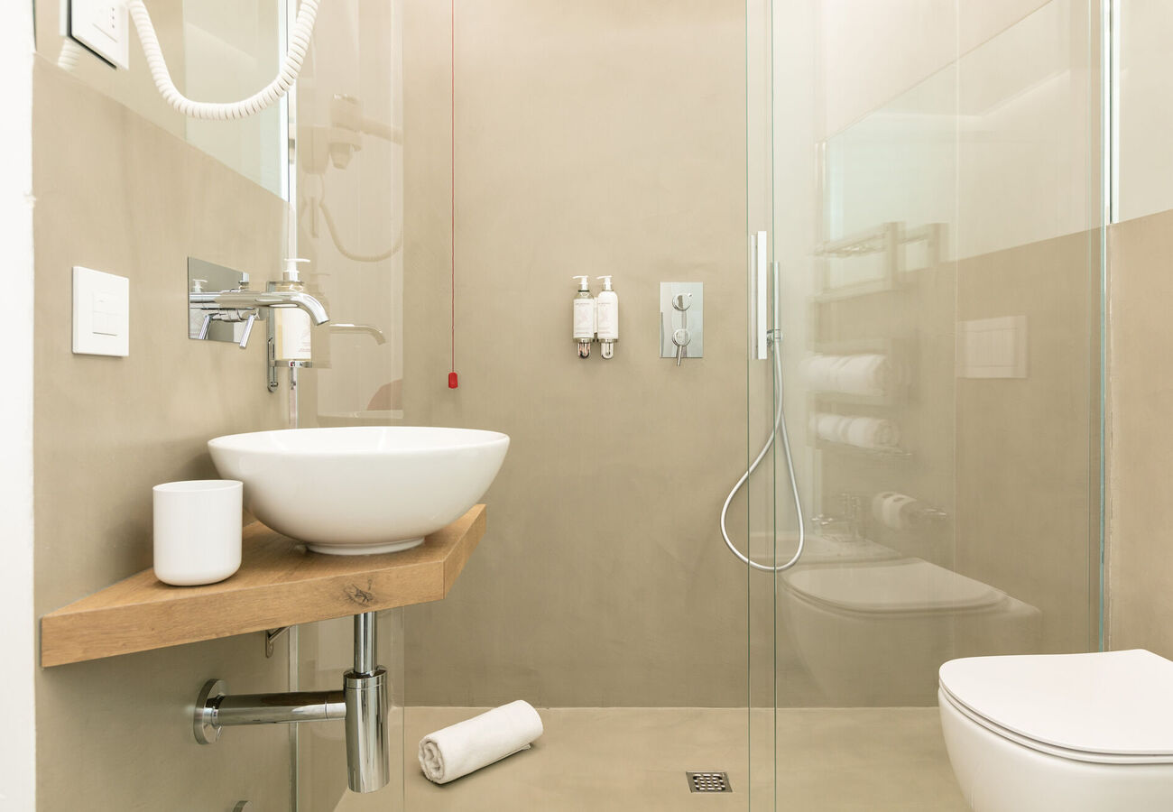 Minimalistisch mit edlen Naturwerkstoffen eingerichtet und im ersten Stock mit Blick auf die Piazza Cavour gelegen, bietet den Gästen ein freundliches und elegantes Ambiente, in dem man sich entspannen und seinen Urlaub in Tirano genießen kann.