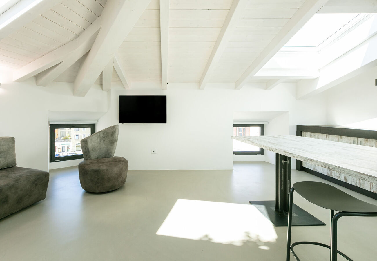 Situato al terzo e ultimo piano, a una rampa di scale dal rooftop terrace panoramico, questo luminoso e silenzioso appartamento con travi a vista è ideale per una famiglia fino a 3 persone, una coppia o un piccolo gruppo di amici.