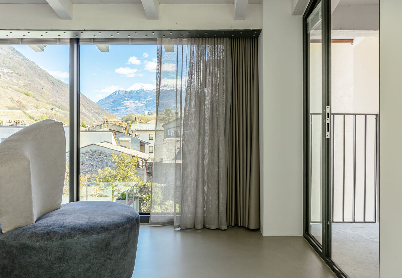 Situato al terzo e ultimo piano con travi a vista, questo elegante e silenzioso appartamento gode di viste sia sulle montagne che su piazza Cavour. Ideale per una famiglia fino a 4 persone, una coppia o un piccolo gruppo di amici è dotato di camera matrimoniale con vista panoramica sulle montagne, bagno con doccia a pioggia e vasca da bagno, soggiorno con angolo cottura, macchina caffè, set pentole e servizio piatti Villeroy&Boch, offrendoti tutto il necessario per un soggiorno raffinato e confortevole.